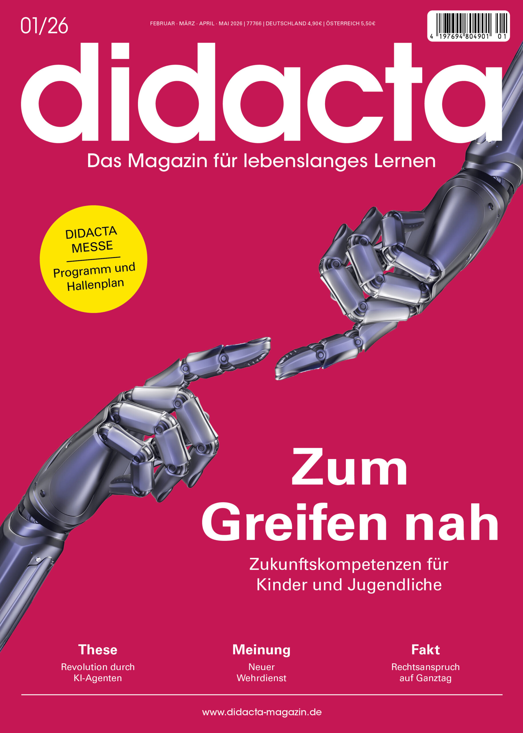 didacta widmet sich als einziges deutsches Fachmagazin dem lebenslangen Lernen. Jede Ausgabe greift relevante Themen aus Kindergarten, Schule, Hochschule, Aus- und Weiterbildung auf und verschafft so einen Gesamtüberblick über die einzelnen Bereiche, Themen und Übergänge des Bildungsverlaufs. Fach- und praxisbezogene Beiträge vermitteln fundiertes Wissen, praktische Tipps und Ideen geben zusätzliche Anregungen für die tägliche pädagogische Arbeit und liefern einen Einblick in das Geschehen auf dem Bildungsmarkt.