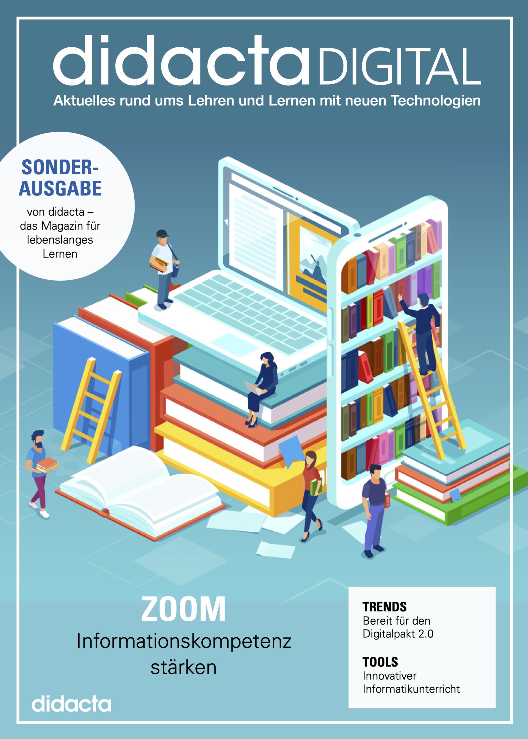Das Fachmagazin didacta DIGITAL richtet sich an Schulleiter, IT-Verantwortliche in Bildungseinrichtungen, Lehrkräfte und Pädagogen sowie Schulträger und Kommunen. Es bietet einen Überblick über aktuelle Entwicklungen im Bereich Digitalisierung, zeigt nützliche Tools für den Unterricht und gibt Tipps zum Einsatz von neuen Technologien an Schulen.